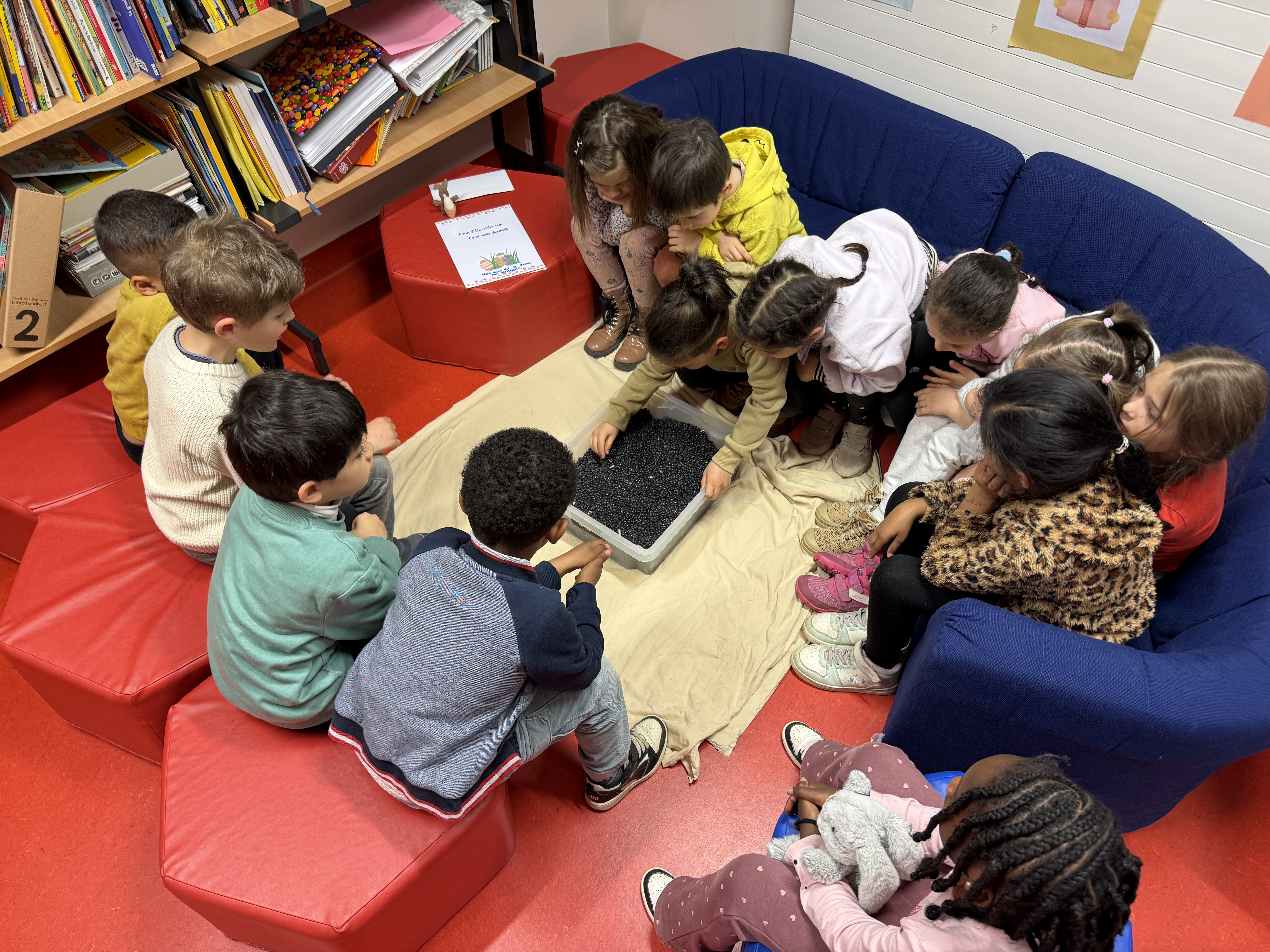 Dës Woch haten d'Kanner aus dem Cycle 1 d'Chance fir e flott Ouschterspill/Rallye an der Bibliothéik kënnen ze maachen . 6 Aufgaben a 6 Puzzle-Stécker hunn si bei den Hieschen an de "Schatz" geféiert. Merci Linda , fir déi flott Initiative.